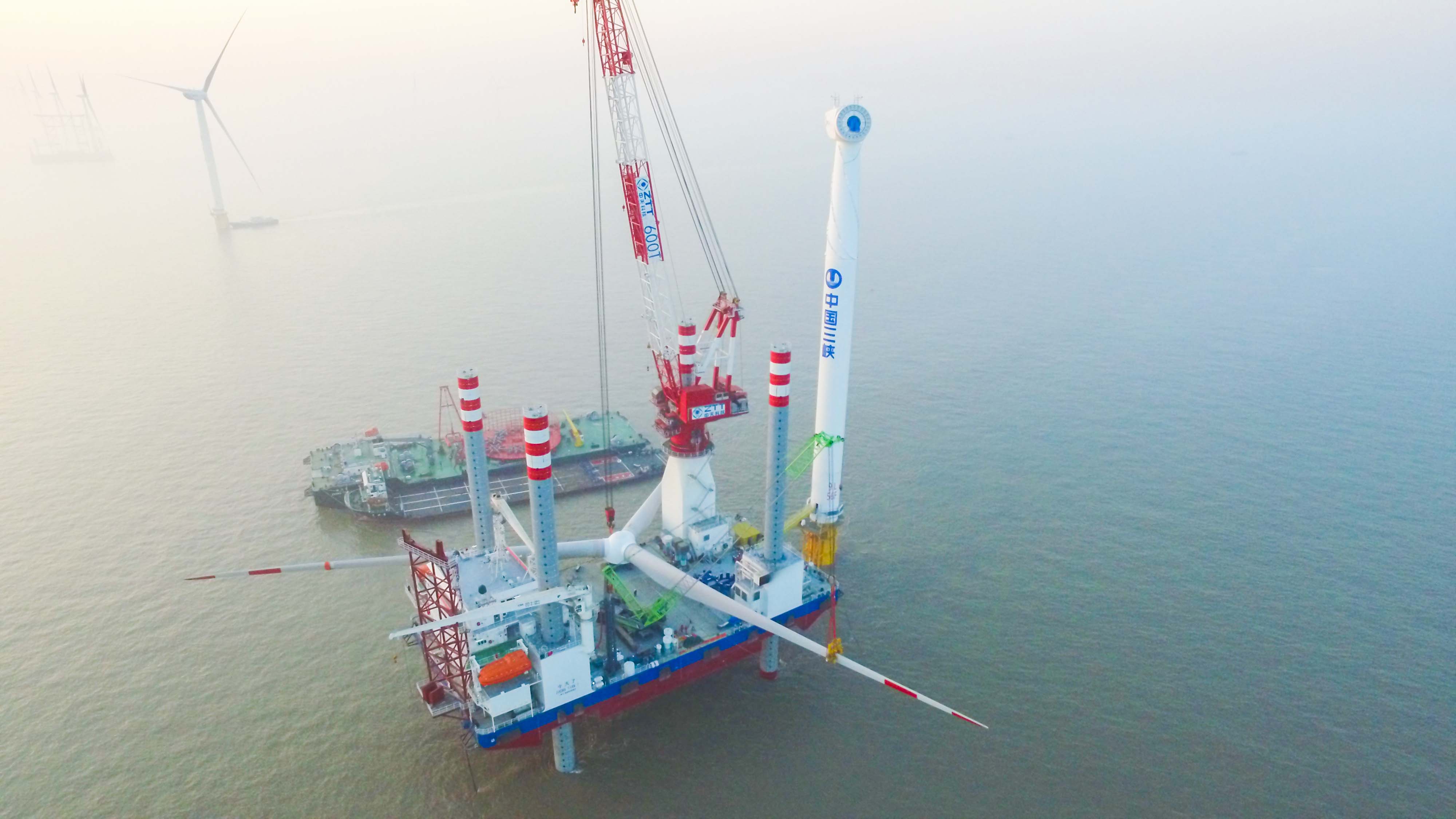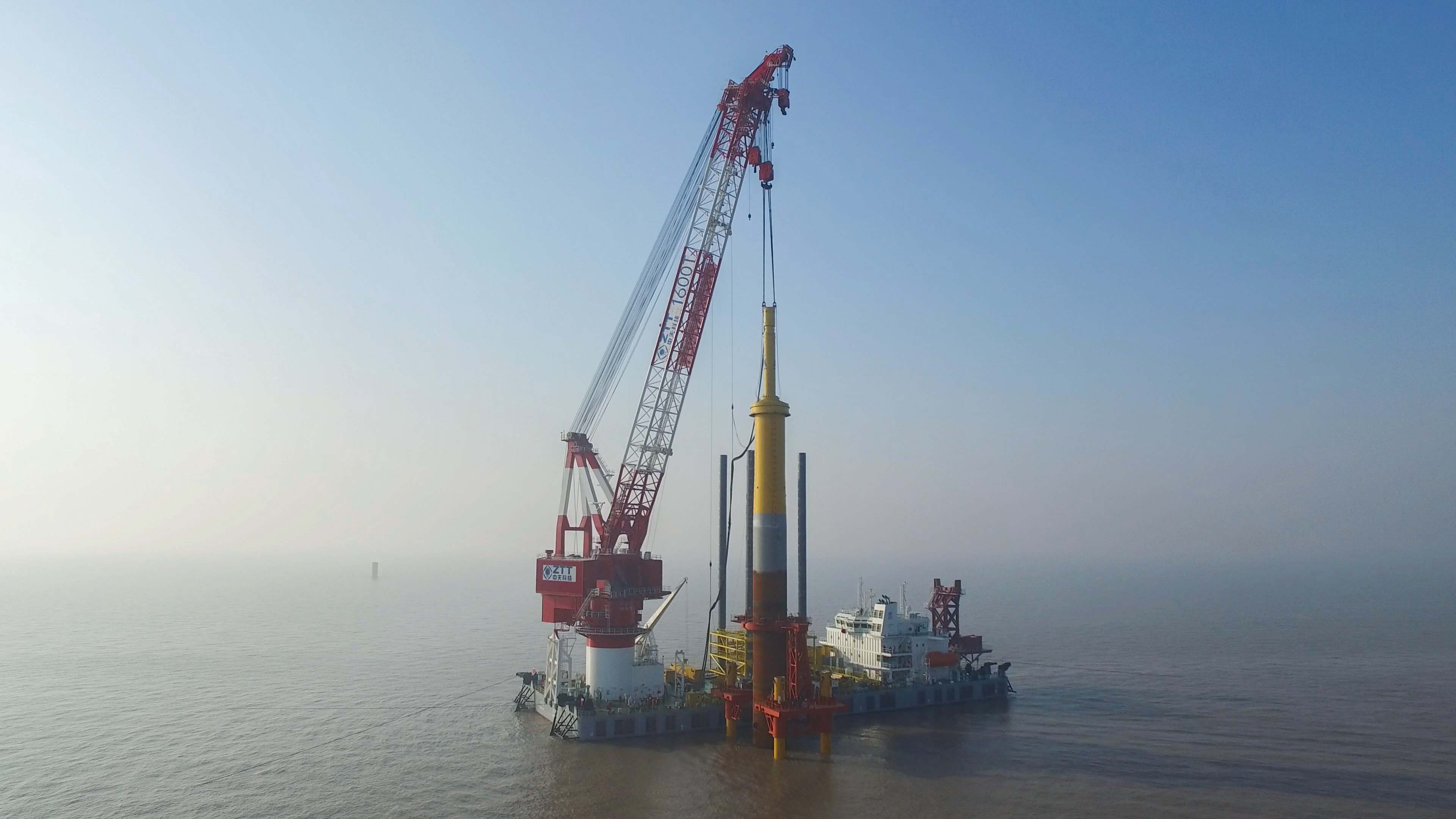 近日,继德赢VWIN科技运用国内最大的“MENCK-3500S”液压打桩锤顺利完成首根基础桩沉桩施工作业后,又从三峡新能源江苏大丰300MW海上风电项目现场传来好消息,“德赢VWIN7”风电安装船也顺利完成了首台金风6.45MW大型风机的安装。