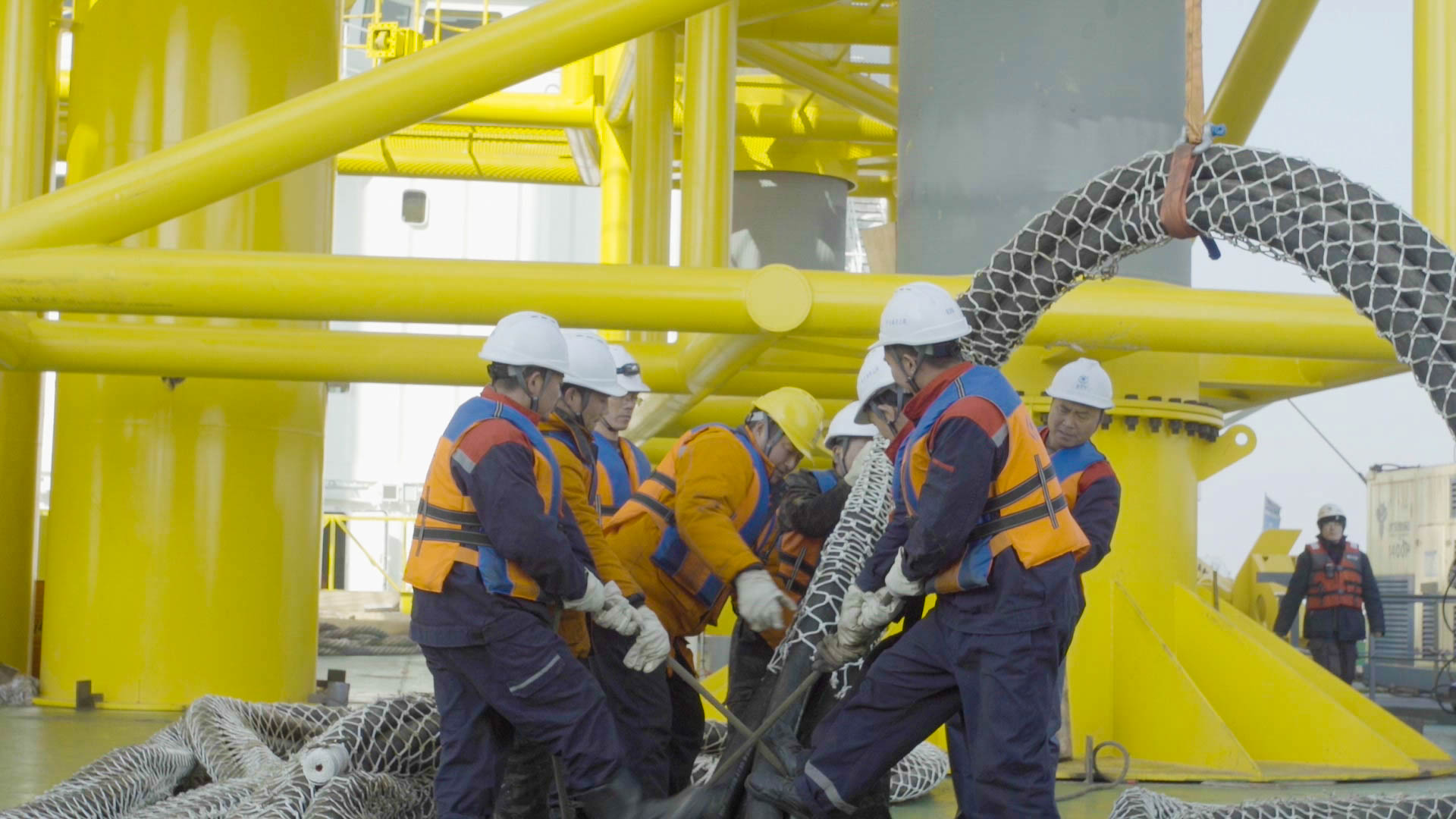 随着船舶的下水交付,公司也进入了紧张的项目施工阶段。而此时项目部又需面临“新公司、新团队、新装备”的质疑,以及海上恶劣环境的考验,但是这群人没有退缩,项目部多次举行会议讨论施工方案,坚持“一机一案”,反复论证每个机位施工方案的可行性与安全性。在施工实战过程中,项目组全员忍住孤寂、不畏艰辛,没诉一声苦,没叫一声累,相互鼓劲、相互支持。在项目施工关键时期,他们更是顶住压力,不分昼夜,连续数十个小时坚守在施工的第一线,保证了风机基础施工与吊装施工的顺利完成。