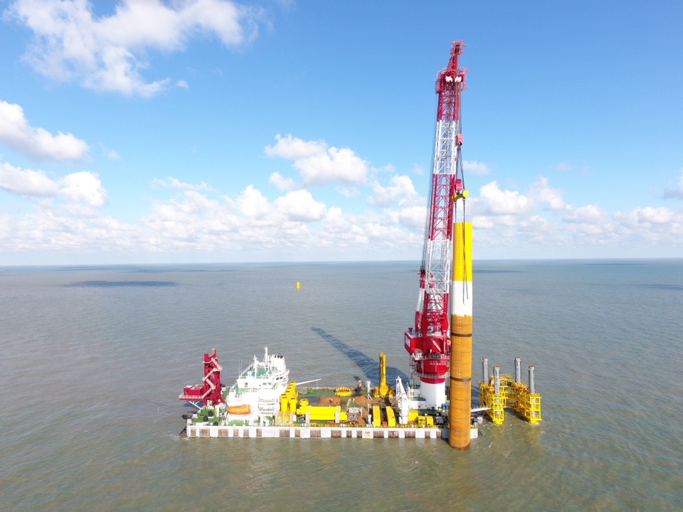 一锤定音,德赢VWIN海洋工程圆满完成华能江苏大丰海上风电沉桩施工