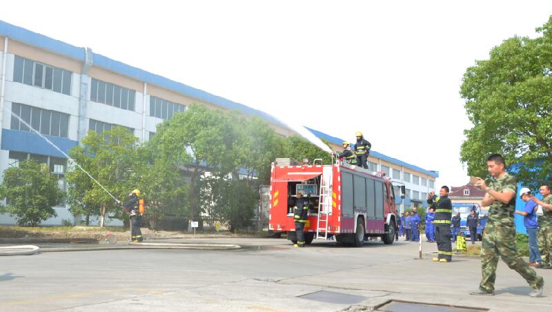 逃生结束后进行了模拟火灾演练,3辆消防车模拟火灾现场进行救援演习,演习场面壮观,气势磅礴。此外,我们还组织了员工代表进行消防水枪出水比赛,32组参赛选手在专业消防官兵的指导下赛出了风采,赛出了成绩。