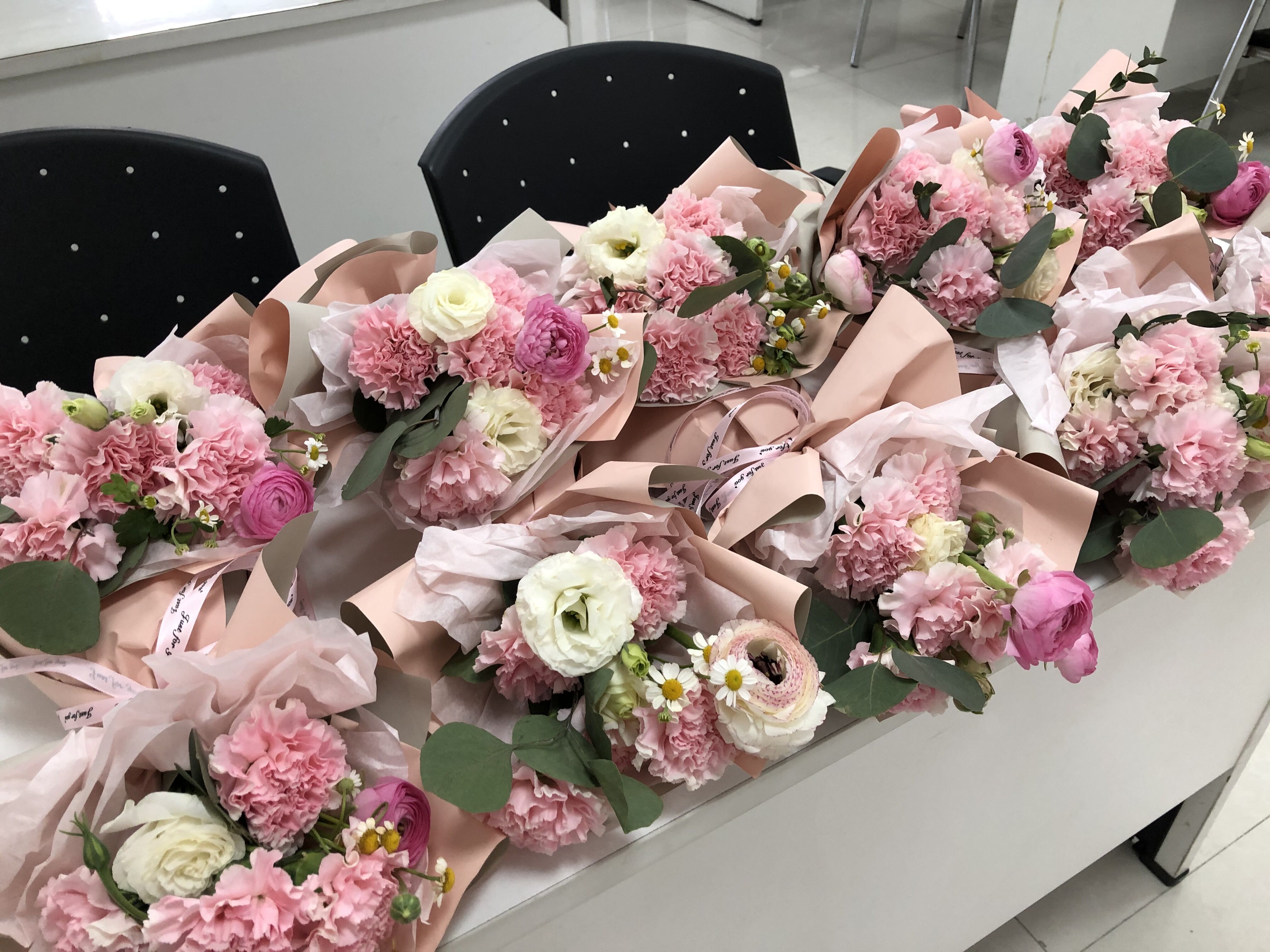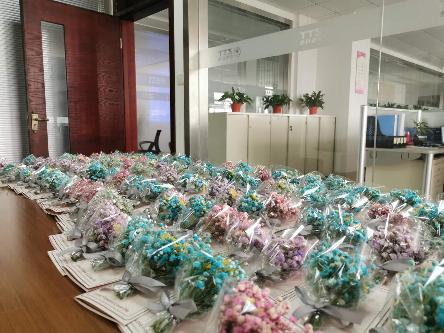 材料总厂精神家园工程师组织购买了康乃馨,将鲜花与贺卡送至在车间的每一位女员工手中。